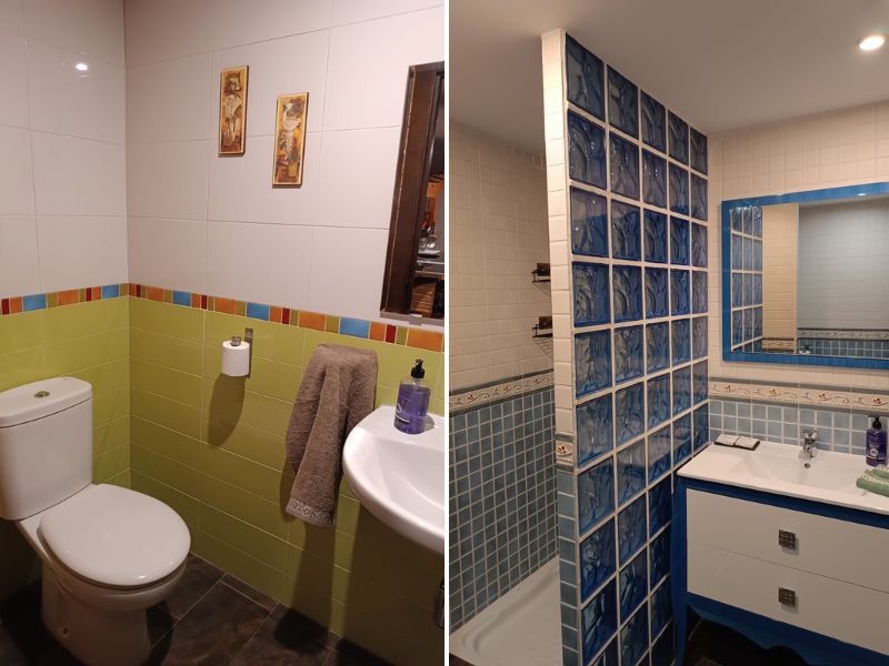 - En la primera planta hay una habitación muy amplia con cama de matrimonio y zona de descanso con dos butacas, un cuartito de lavadora y enseres de limpieza y un baño completo.